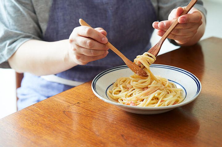 ゆでたパスタを、お皿の中でぐるぐる、で完成!シンプルゆえに、バター×たらこの魅力がダイレクトに味わえる大満足のパスタを、料理研究家の重信初江さんに教わりました。あなたのランチの常連になること、請け合いです。