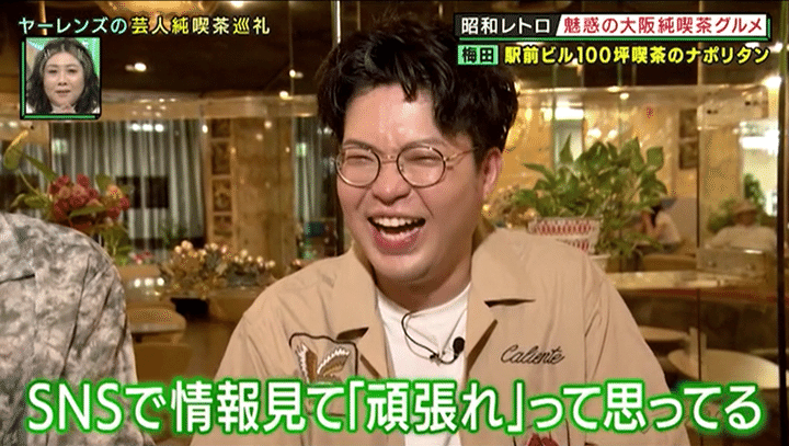 なお、この一連の様子は、やすともが司会を務めるバラエティ番組『やすとものいたって真剣です』(ABCテレビ)9月18日放送回で公開された。同放送回では、「ヤーレンズの芸人純喫茶巡礼」と題して、ヤーレンズが大阪芸人おすすめの喫茶店を巡った。