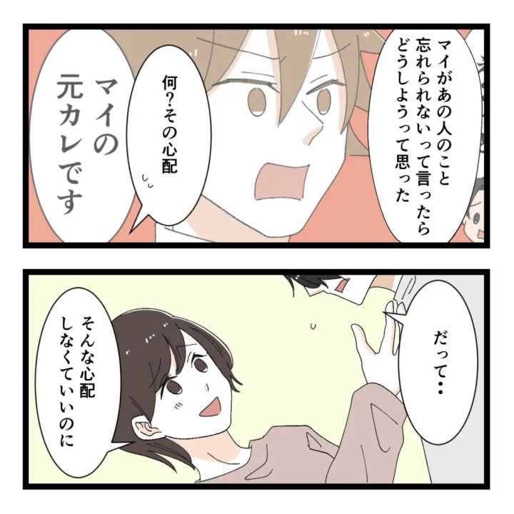 偶然再会した元カレのヒロトさんから「別れたことを後悔してる。マイと結婚してたら」と言われ怖かったと夫のカイさんに話したマイさん。すると、カイさんが「僕も・・」と口を開きました。