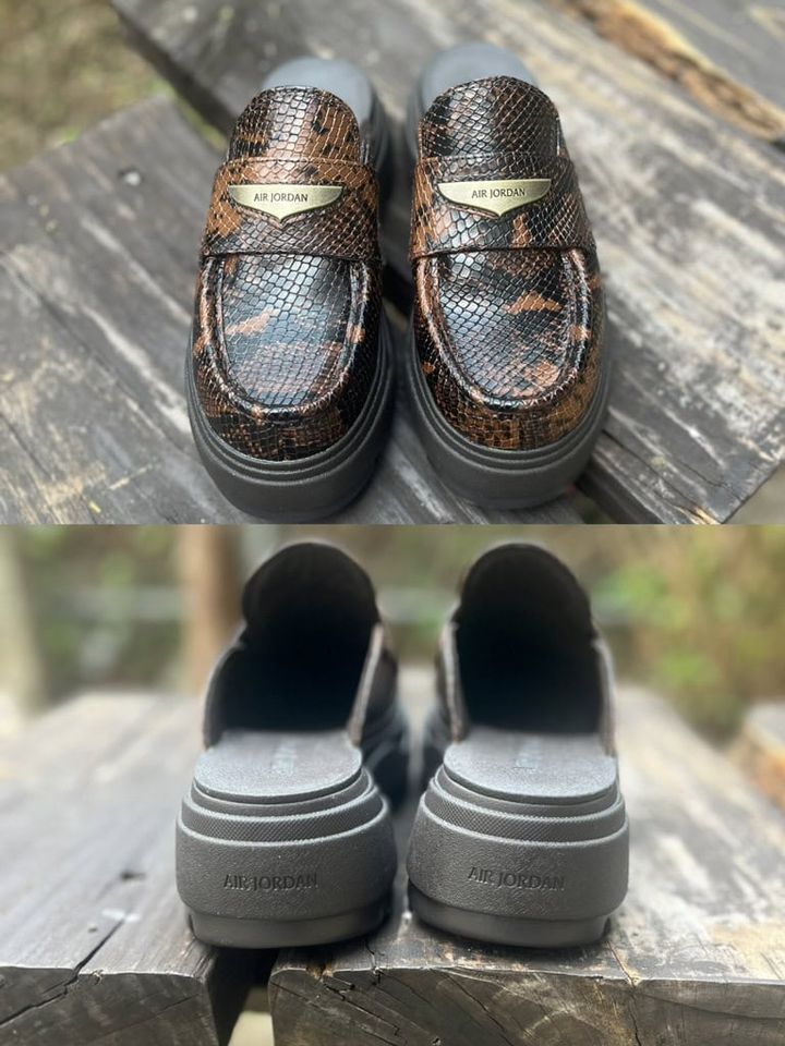 【ジョーダン】ブラウンのスネーク柄で旬度満点。この盛れるボリューム感も魅力です!