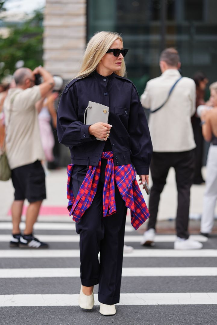 実際、90年代を思わせるネルシャツは、アクネ ストゥディオズACNE STUDIOS)、ボッテガ・ヴェネタBOTTEGA VENETA)、バーバリーBURBERRY)といった2025年春夏コレクションにも数多く登場。秋冬シーズンにも人気が続き、NYの街では腰に巻くアイテムもシャツにとどまらず、鮮やかなクルーネックやニュートラルカラーのケーブルニットへと広がっていた。