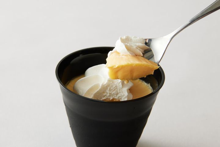 「五三焼き」とは〝卵黄5:卵白3〟の黄金比率で作られるカステラのこと。一般的なカステラは全卵(卵黄1:卵白1)を使用することが多いなか、「五三焼き」は職人の勘所が必要とされ、経験と高い技術が求められるのだとか。そんな「五三焼き」にこだわり続ける創業150年以上の長崎の老舗カステラ屋が手掛ける〝本気〟のプリンがこちら。雲仙の温暖な気候のなか、おいしい飼料を食べて育った鶏の「雲仙太陽卵」の配合はもちろん、こだわりの卵黄5:卵白3。さらに日本が誇る高級砂糖「阿波和三盆」、南九州・高千穂の雄大な自然で育った乳牛から絞った牛乳などの厳選素材を使用。カステラ作りと同じオーブンを使用し、低温で2時間じっくりと焼き上げたプリンは、プルプルなのに舌ざわりが驚くほどなめらか。濃厚な風味もクセになる、プリン好きならずとも必食のおいしさです。