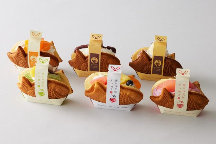 その名の通り、“花嫁”がコンセプト「瀬戸内花嫁たい焼き」は、ギフトに喜ばれるおめでたいスイーツ。生クリームを花嫁の被る“角かくし”に、色とりどりの具材を“かんざし”に見立てたその可愛らしさに、全国からの注文が絶えません。見た目もさることながら、その味も一級品!フルーツミックス、みかん、洋梨ベリー、栗抹茶、アンシャンティ(あんこと生クリーム)、ベルギーチョコという6種類は、和と洋を融合させた新食感のたい焼きです。美味しさのこだわりのひとつは、柔らかくふわふわな生地。ケーキのスポンジに近い製造法で、卵をしっかりかき混ぜた後に特別配合の粉を加え、これを一枚一枚丁寧に手焼きして完成します。たい焼きにも“天然”と“養殖”の区別がありますが、その概念を飛び越えた瀬戸内花嫁たい焼きは、まるで“箱入り娘”のように、全工程を手作業で大切に作り上げられています。