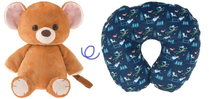 ダーリング家の末っ子、マイケルが持っているテディベアをモチーフにした「ネックピロー」4400円。ぬいぐるみのように見えますが、背中側のファスナーを開けて中のビーズを移動。生地をひっくり返すと、空を飛ぶキャラクターがプリントされたネックピローになるんです♪
