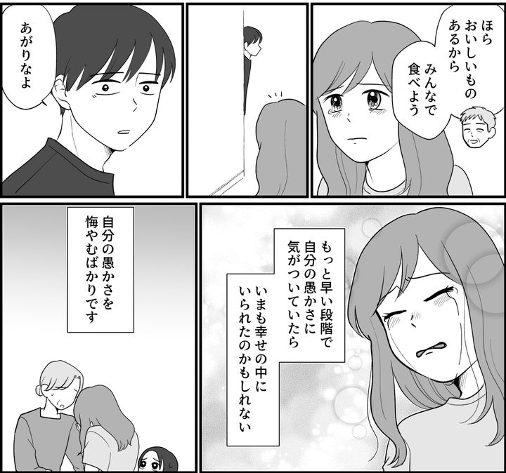 いままで、私は自分の力で稼ぎ、そのおかげで優雅に生活できていると思っていました。しかしそれは大きな間違いで、豊かな生活ができていたのはコウタの稼ぎのおかげだったことを痛感しました。そして、私が見下していた義両親のような節約生活を経験して、やっと義両親の気持ちがわかったのです。