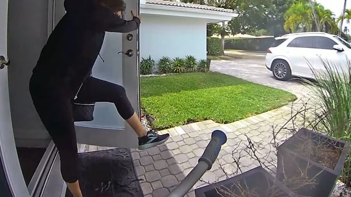 3. これはビビる!外出しようとした女性もビックリ!玄関のドアの前で思わず飛び上がってしまったのは『あの生き物』がいたからでした!!【海外・動画】