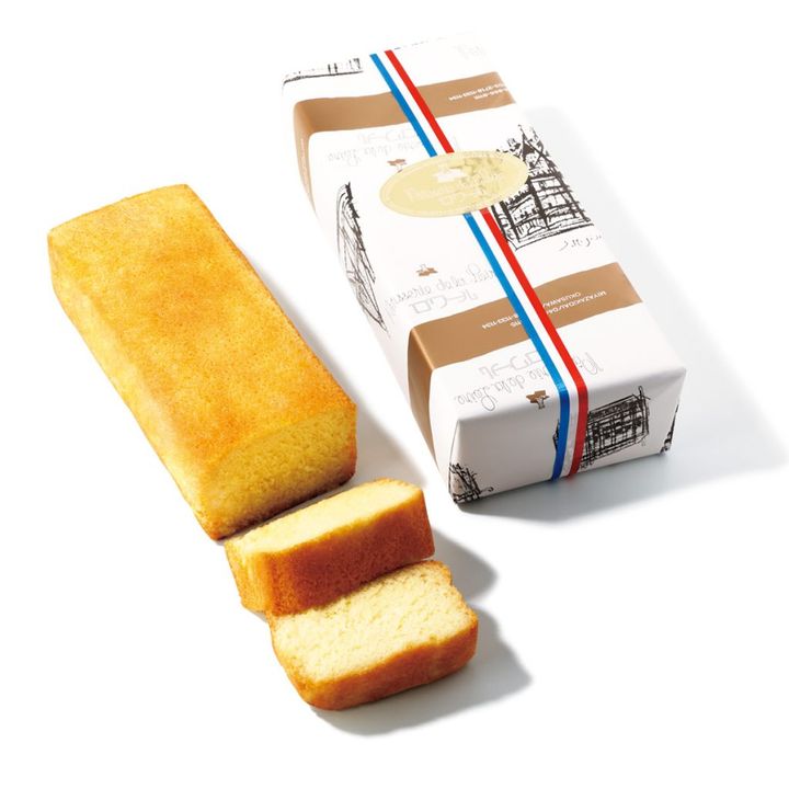昭和32年に創業、フランスの伝統を汲みつつも親しみやすいケーキやパイ、焼き菓子などが並ぶ洋菓子店。こちらの看板商品が、包みを開くやブランデーの香りがふわり広がるほどの芳醇なケーキです。きめ細かい生地にブランデーをブレンドしたシロップを染み渡らせ、しっとりふわふわな口当たりに。常温で2カ月ほど日持ちして、店主・藤井悦司さん曰く「寝かせるとブランデーが馴染み、作り立てよりまろやかになって美味しい」とのこと。食べごろをいまかいまかと待つのも楽しい一品です。