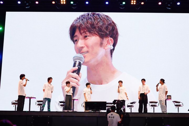 佐野さんが「横山会の主がいないんですけれども。大雨でいろんな交通機関が乱れて、横山くんもギリギリまで向かおうとしていたんですが…すみません、来られないみたいです」と代表して謝罪。会場に「えーっ」という落胆の声が巻き起こると「えーっておっしゃってるじゃないですか。僕たちも同じ気持ちなんですよね」と、なだめる小瀧さん。「『24時間テレビ』で横山くんがランナーで走ってる時も、“頑張ってください”って俺らがメッセージを送らせてもらったら、“この横山会終わりの打ち上げを楽しみに頑張るわ”って言ってた人がなんでおらんねん!」と佐野さんが悔しがる。