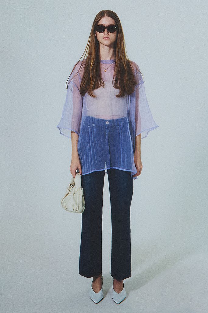 ビスチェは着まわし。シアートップス/RITA ROW(ジャーナル スタンダード レリューム ルミネ新宿店) デニムパンツ/ニードバイヘリテージ(ゲストリスト) サングラス/ステータス アングザエティー、バッグ/アコック(ともにジャック・オブ・オール・トレーズ プレスルーム) ネックレス/ete シューズ/バナナ・リパブリック