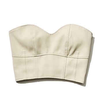 透け感のあるトップスの新たな表情を引き出す、ストラップのないコンパクトな形。肌なじみのいいカラーは主張しすぎることもなく、シアー素材に限らず多くのトップスと合わせやすい。