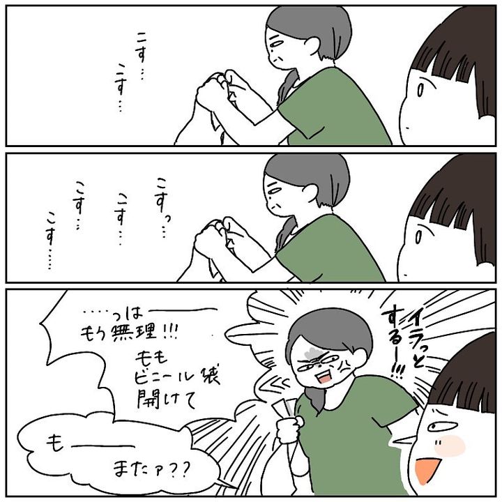 ビニール袋広げるのが、こんなに難しいことだったとは…。