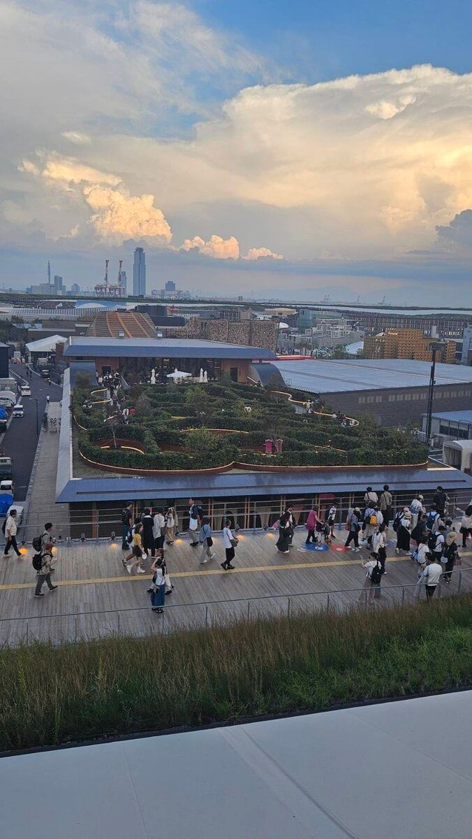 入場チケットは、東ゲート・西ゲート選ぶかたちになっていて、時間帯も区切られているのに、入場時は荷物検査もあるため、行列です。わたしが取れたチケットは東ゲートの12時(それより早い時間は満員御礼)。お昼は混むと聞いたので、14時着で行ってみましたが、それでも大行列! 我が家は94歳車椅子の祖母連れだったため、優先レーンでスムーズに入場できましたが、並んでいたら1時間超えだったと思われます。15時すぎれば少し緩和されるという噂ですがはたして。17時が来ると、17時以降のチケットで夜組がやってくるのでまた混みます。