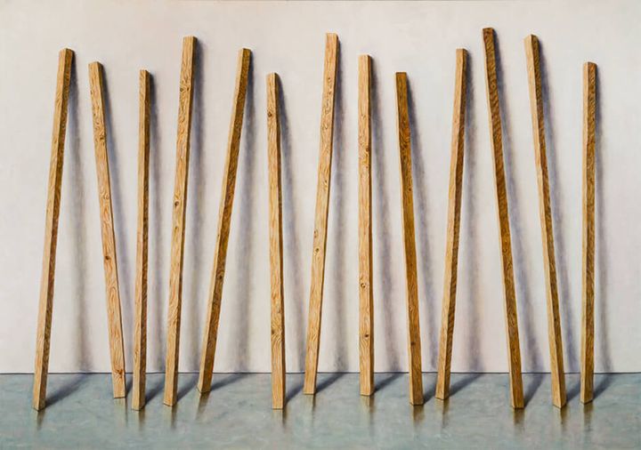 佐々木健《ゲバ棒、杖、もの派の現象学、または男性性のロールモデルについてのペインティング》2024年 撮影:加藤健
