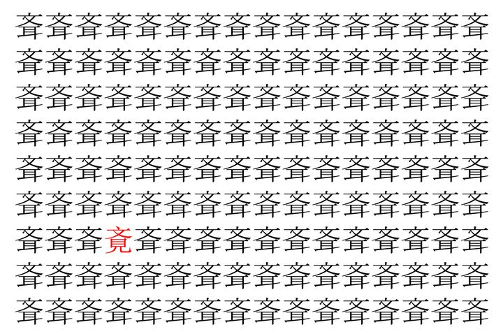 画像に並んだたくさんの「斊」という漢字。 その数144個なのですが・・・、実はその中に1つ違う漢字が紛れ込んでいます!!