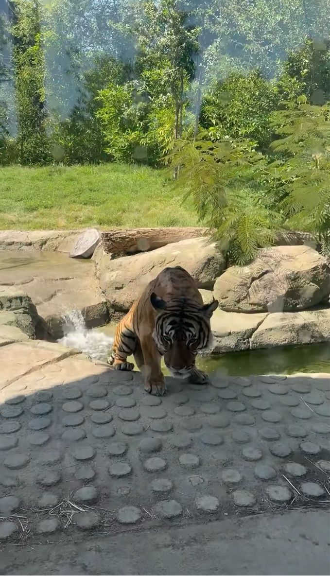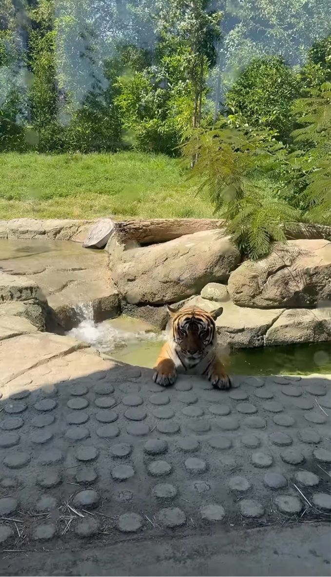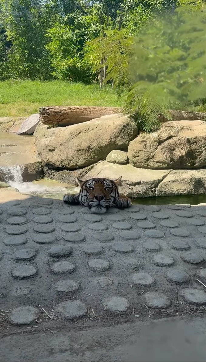 夏の動物園で、撮影者さんはトラの予想外の行動を目撃しました。