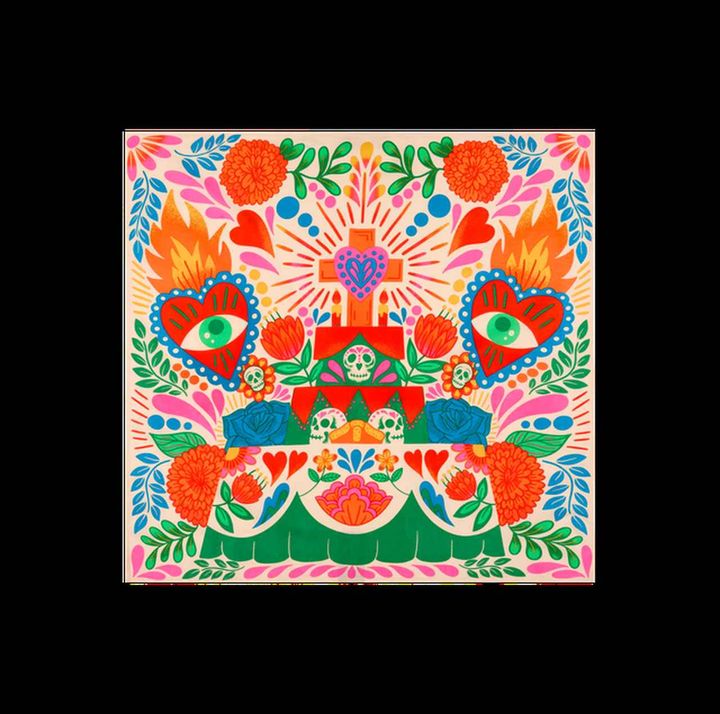 風呂敷をヒントに生まれた、何度も繰り返し使える数量限定のギフトラッピング用商品です。メキシコのお祭りをイメージした鮮やかなデザインを手がけたのは、メキシコ生まれで現在はアメリカ・カリフォルニア州を拠点に活動するグラフィックデザイナー兼イラストレーターのBlanca Molina。メキシコの伝統や図像に触発された作品です。