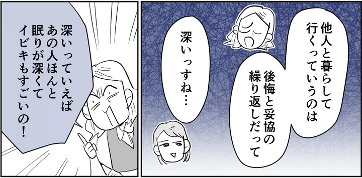 「ってか、なんでそんな人と結婚したの?」そんな人を自分が選んで、自分の見る目のなさもベラベラ言いふらしちゃっているって気が付かないのかなと私はいつも思っていました。悪口って……ずっと聞いていると疲れてくるんですよね。いつしか、山田さんの旦那さんの愚痴に、愛想笑いできないほどストレスを感じるようになっていました。