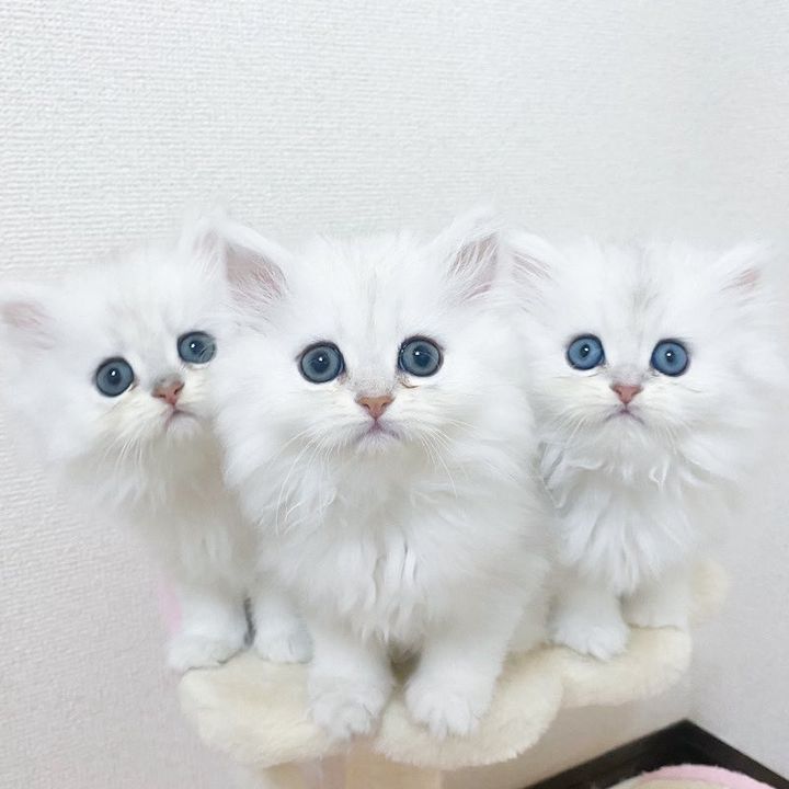 こちらは、3匹のペルシャ猫。 かわいい子ネコたちは、ぴったりと寄り添い、同じようで少し異なる表情を浮かべています。
