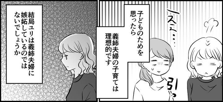 ユリは、自分がそうはできない嫉妬心から「子どもたちが心配」だとか「やりすぎ」だとかそういった言葉で、義姉夫婦を責めているのです。そう考えるとユリの魂胆にゾッとしてしまいました。