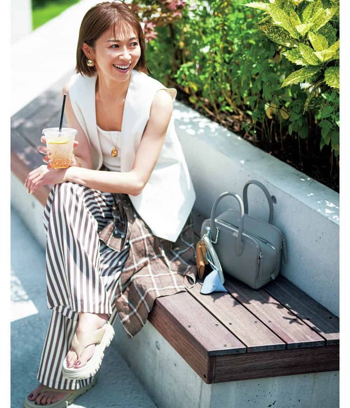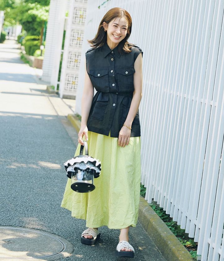 5位 【ジレ&大ぶりアクセ】でゆるっとパンツも瞬時にサマ見え!