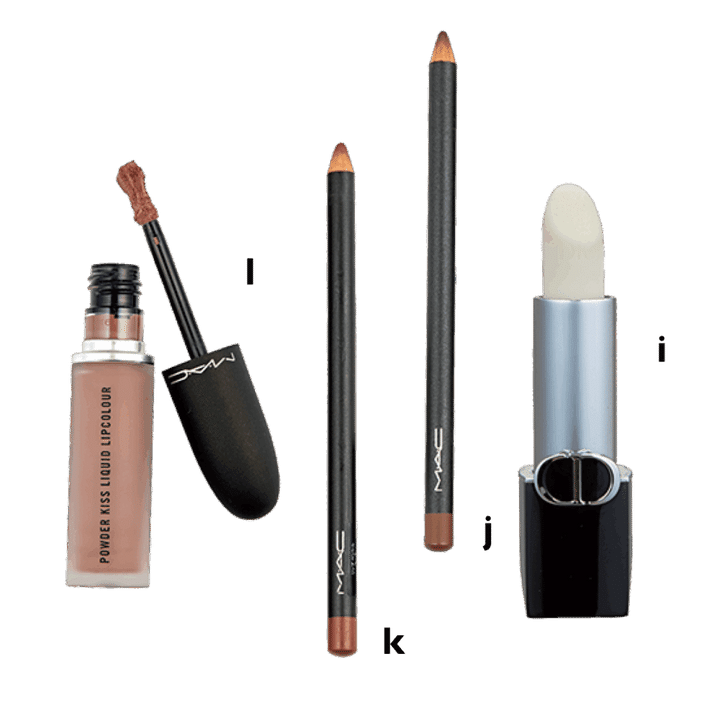 i Diorのルージュ ディオール 000 ディオール ナチュラルバーム j M・A・Cのリップ ペンシル オーク k M・A・Cのリップ ペンシル グレージュ l M・A・Cのパウダー キス リキッド リップカラー 950 イッツ パーソナルは本人私物