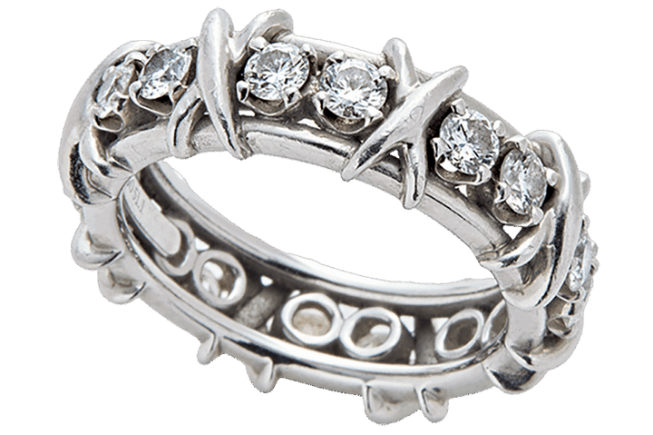 「華奢なデザインながらも、フルエタニティや一点で輝きを添えてくれるダイヤ入りに夢中。腕時計もクラシックな手元を盛り上げてくれるスパイスに。ノーネックレスで顔まわりはすっきりさせます」