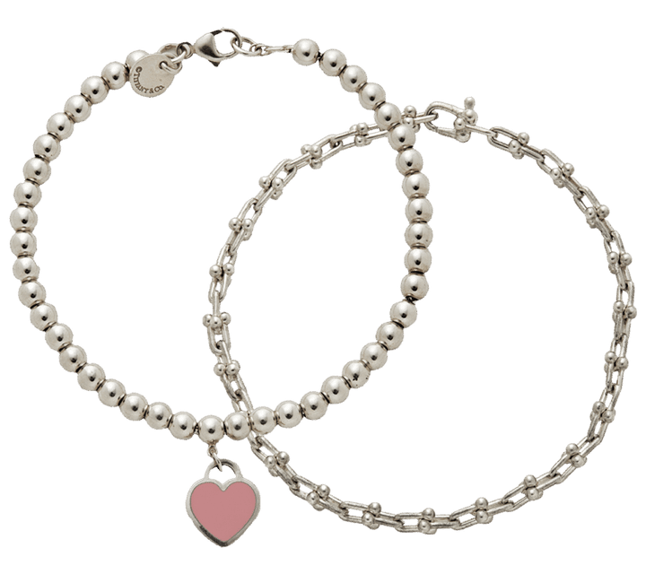 「カラーメイクを楽しみたいときほど、ジュエリーはシルバーでまとめたい気分。ボールタイプやチェーンなど、存在感のあるデザインの重ね着けもシルバーで統一することで大人なバランスに」