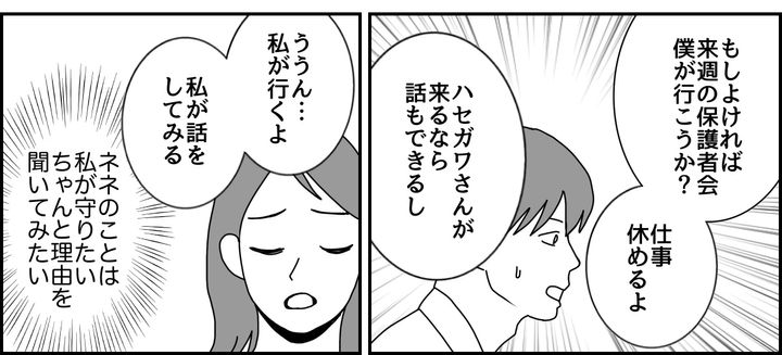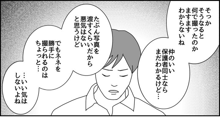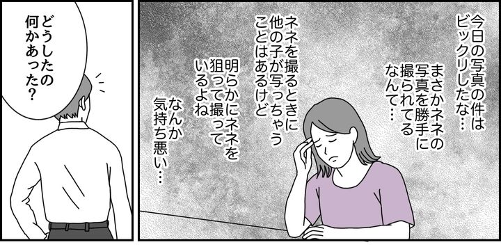 ハセガワさんの行為を不思議に思うばかりの私でしたが、「ネネの写真を悪用される危険性」について夫から指摘されてゾッとしてしまいました……。来週はちょうど保護者会があるので、もしハセガワさんが来たらきちんと話をしようと思っています。