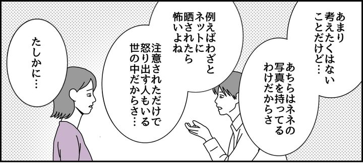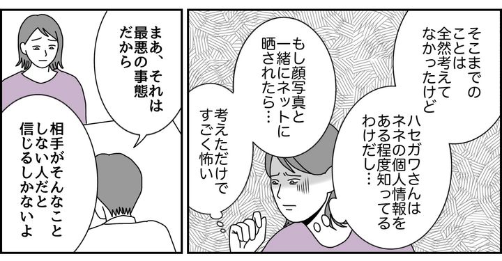 ハセガワさんの行為を不思議に思うばかりの私でしたが、「ネネの写真を悪用される危険性」について夫から指摘されてゾッとしてしまいました……。