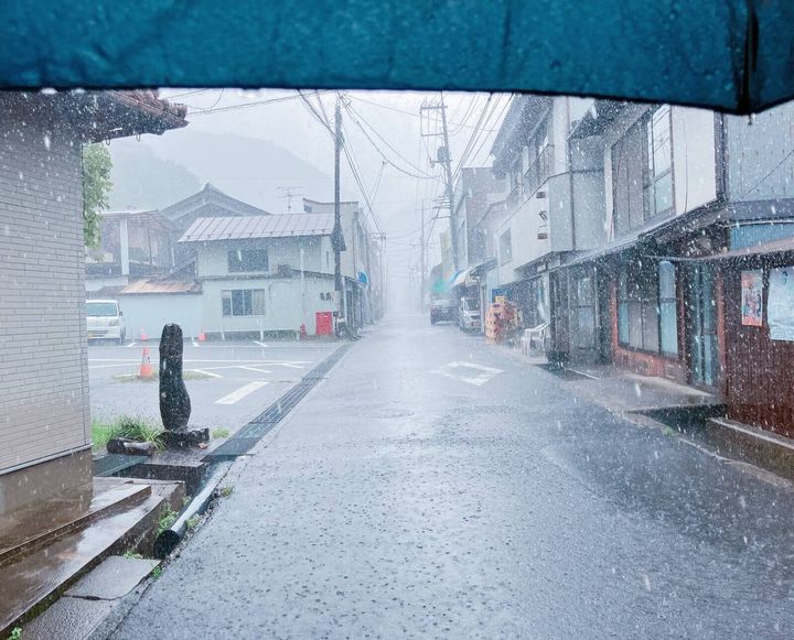ふと外を見ると都合よく土砂降りの雨が降り始めたので、さっそく散歩に出かけました。