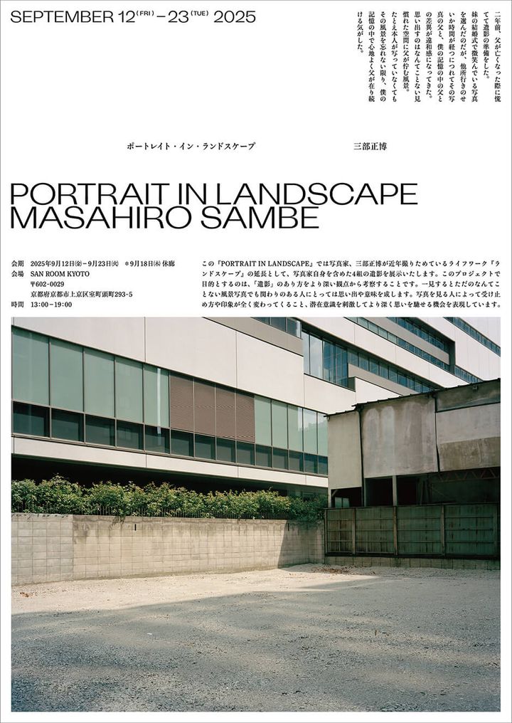 写真家 三部正博による展覧会「PORTRAIT IN LANDSCAPE」が、SAN ROOM KYOTOにて9月23日(火・祝)まで開催中。