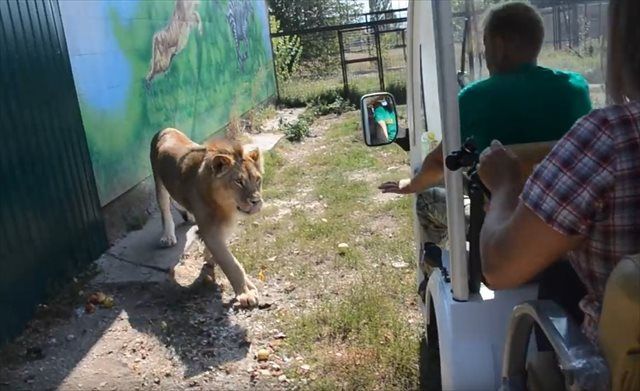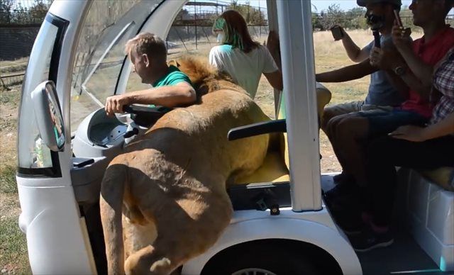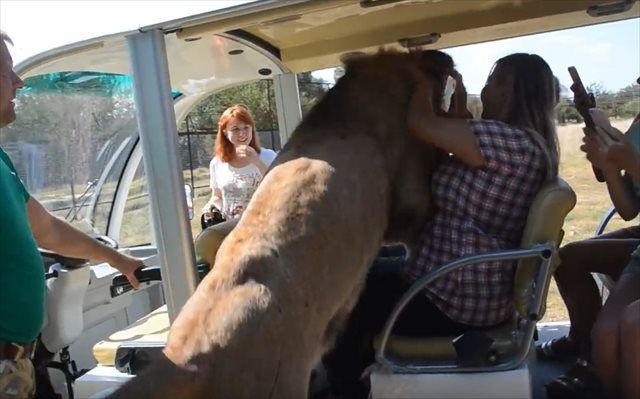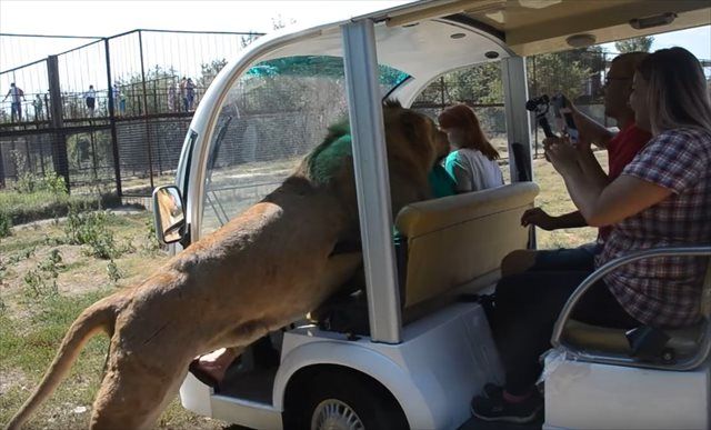 サファリパークでライオンが車の中に突入!至近距離にライオンがいるという危険な状況に、乗客達は無事だったのでしょうか!?