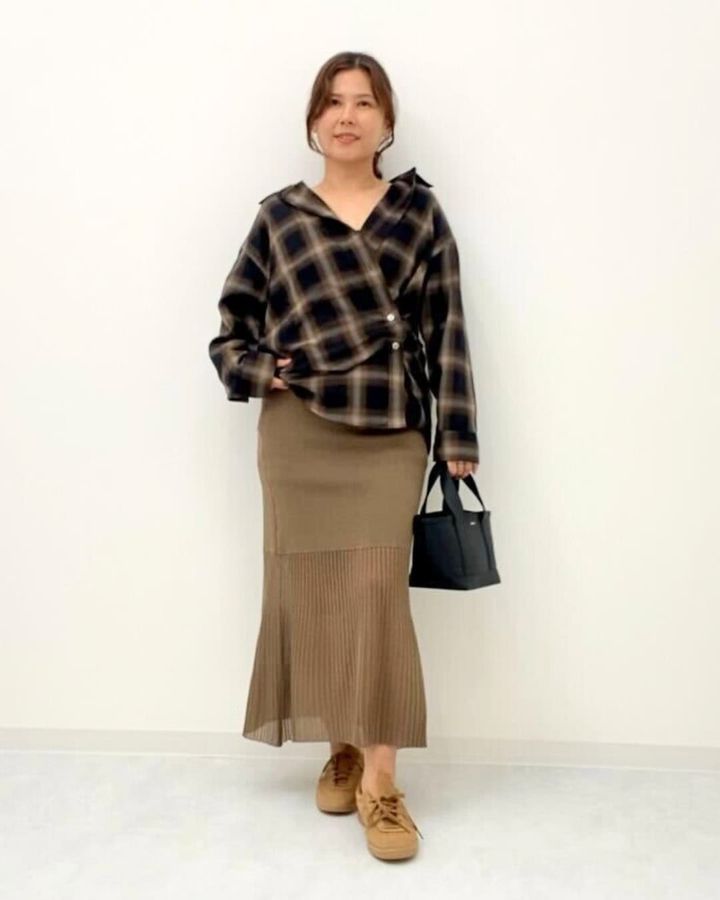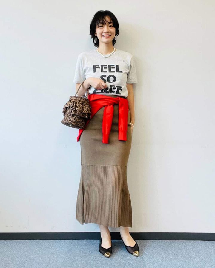 3. 上品にもカジュアルにも使えて万能!40代の「ニットスカート」身長別コーデ〈3選〉