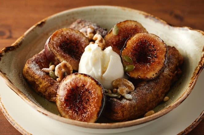 外はカリッと中はふんわり焼き上げたフレンチトーストに、旬の国産無花果をキャラメリゼして、たっぷりとトッピング。無花果の自然な甘みとキャラメリゼで外側はカリッとした食感、バター香るフレンチトーストの相性が抜群。