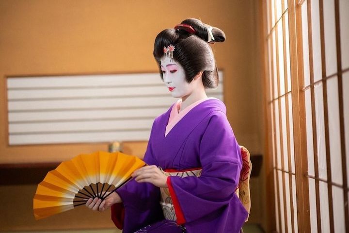 白塗りのときは、自宅でお支度してから歩いて料亭さんに向かうこともあるので、道行く人には私の顔を見てびっくりされますね。笑