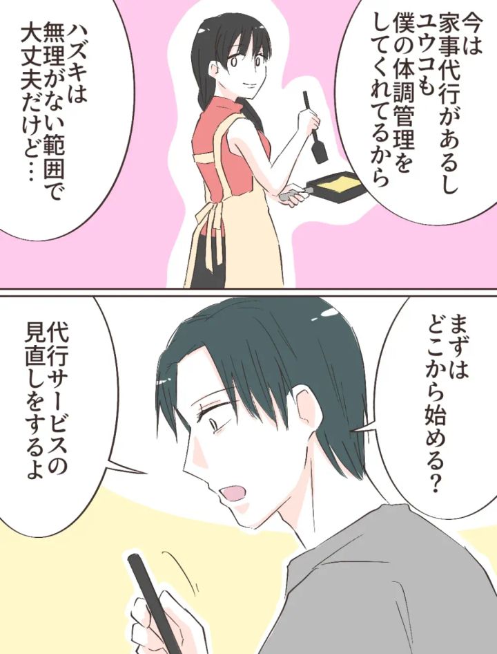 「今は家事代行があるし、ユウコも僕の体調管理をしてくれてるから、ハズキは無理がない範囲で大丈夫だけど・・」と言いながらも、リヒトさんはさっそく「まずはどこから始める?代行サービスの見直しをするよ」とスマホを見ながら考え始めました。