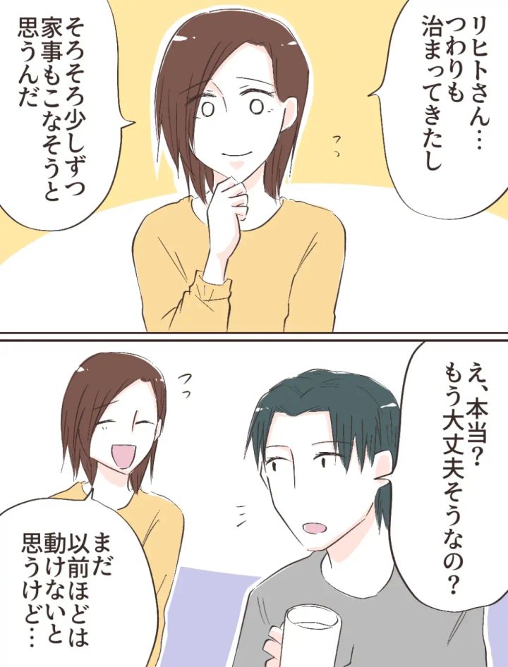 ある日、「リヒトさん・・つわりも治まってきたし、そろそろ少しずつ家事もこなそうと思うんだ」と申し出ると「え、本当?もう大丈夫そうなの?」と聞かれ、「まだ以前ほどは動けないと思うけど・・」とできる範囲でやろうと思っていることを伝えました。