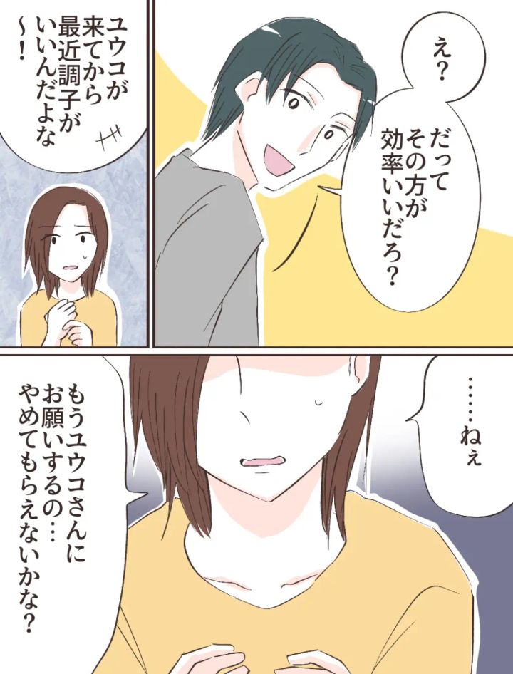 すると「え?だってその方が効率いいだろ?ユウコが来てから最近調子がいいんだよな~!」とあっけらかんと言うリヒトさん。私は我慢できず「・・ねぇ、もうユウコさんにお願いするの・・やめてもらえないかな?」と言いました。