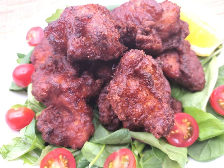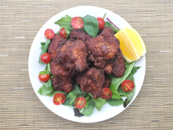 いつもの唐揚げよりも、仕上がりはやや黒っぽくなりましたが、揚げたてをさっそく口に運んでみると、ベーキングパウダーの効果なのか、しっとりジューシーな仕上がりに。衣に片栗粉を使うとカリッとしますが、今回はあまりカリッとした食感はなく、どちらかと言うとフリッターに近い印象でした。
