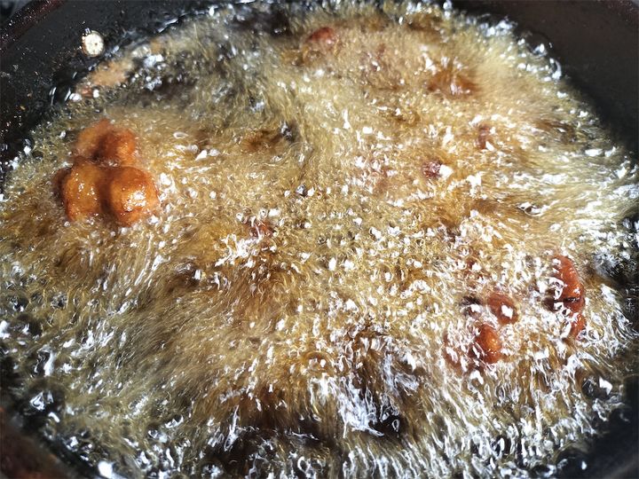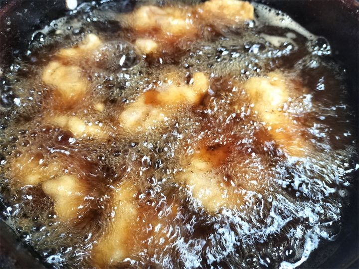 5. 油の温度を180℃に上げて1分半、二度揚げしてから3分休ませます。
