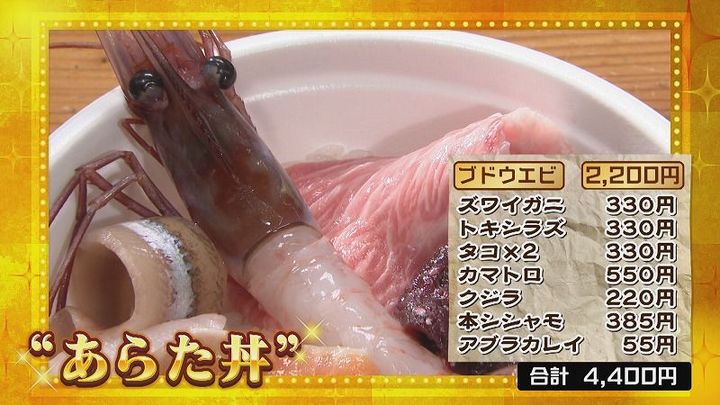 ブドウエビと新鮮な海産物を集めた“あらた丼”が完成!