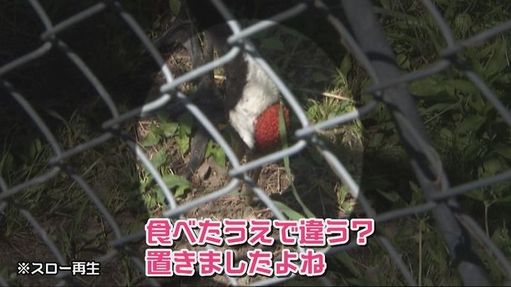 飼育員 高嶋さん:「すぐそばまで来ているけど…頭の赤い所、後頭部まで赤くなっています。普段はクチバシの付け根から頭のてっぺん、そのぐらいだけなんですよ、赤い所って」