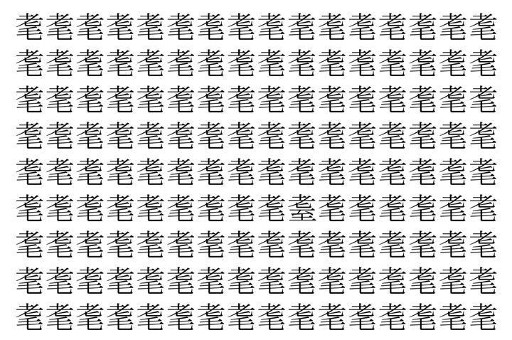画像に並んだたくさんの「耄」という漢字。 その数144個なのですが・・・、実はその中に1つ違う漢字が紛れ込んでいます!!