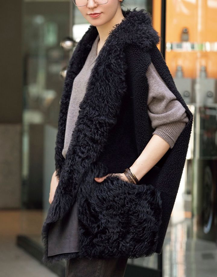 表情たっぷりのムートンベストでスタイリングをグッと印象的に