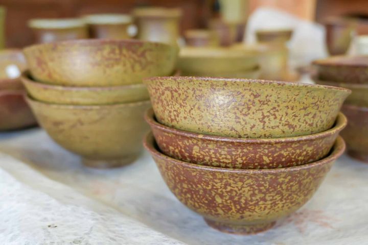 最大の特徴は、素朴で温かみのある風合い。江田島の名産品である牡蠣の貝殻を釉薬に混ぜた「カキ肌釉」を使うことで、独特の質感が生まれるとのこと。たとえ同じ型で作っても微妙な色の濃淡や模様が出るわけではなく、ひとつとして同じ器は存在しないのも面白いところ。