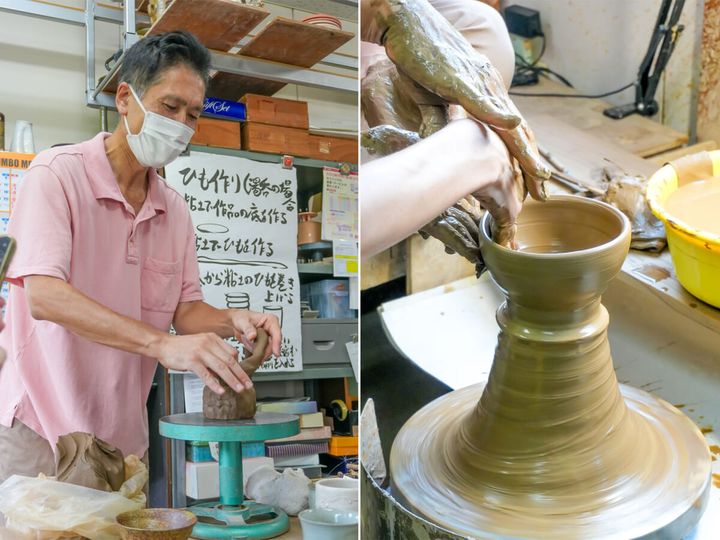 沖山工房では、ろくろなどさまざまな実験を実施。傍で丁寧にレクチャーをしてくれるため、陶芸の経験がなくても大丈夫。完成した器は本焼きを経て後日配送してもらえます。