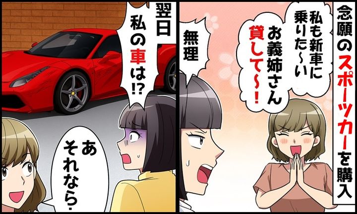 3. 念願のスポーツカーを手に入れた妻。義妹が「貸して♡」断固拒否!翌日愛車が消えた!まさかのワケ