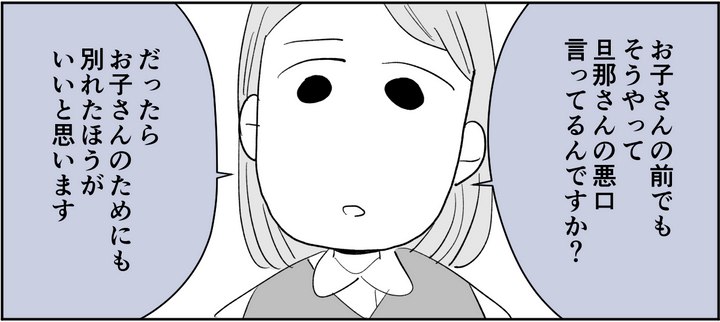 「私だったら離婚しますけどね」山田さんはお子さんにも、こうやって旦那さんの悪口を言っているのでしょうか? 悪口ばかり聞かせるなら、子どものためにも別れたほうがいいと思うのです。私なら、子どもに自分の悪口を言う配偶者なんて自分のほうから離婚します。