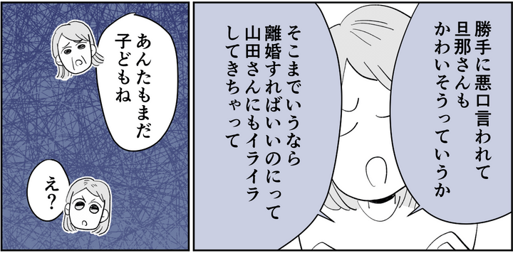 好きで結婚したのに、顔も知らない人に悪口を言われて旦那さんがかわいそうだと思うし、山田さんにドン引いている私もいました。