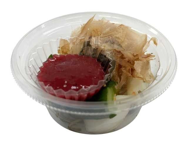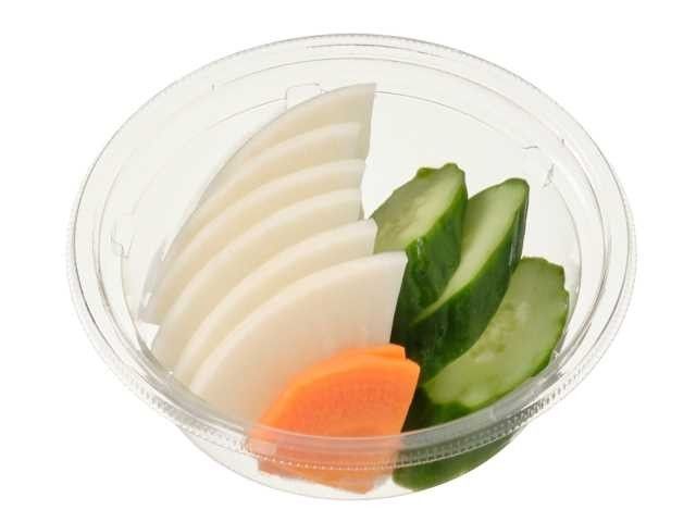 浅漬けの胡瓜と大根を、新潟県産の藤五郎梅につけて食べるカップデリです。